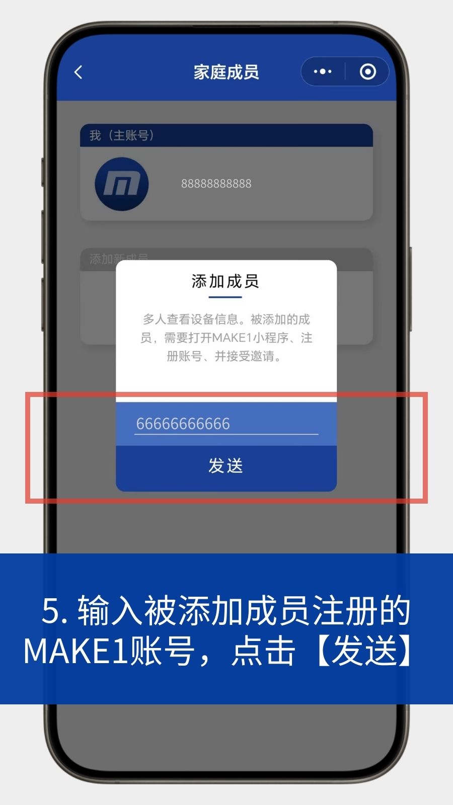 5. 输入被添加成员注册的MAKE1账号,点击【发送】