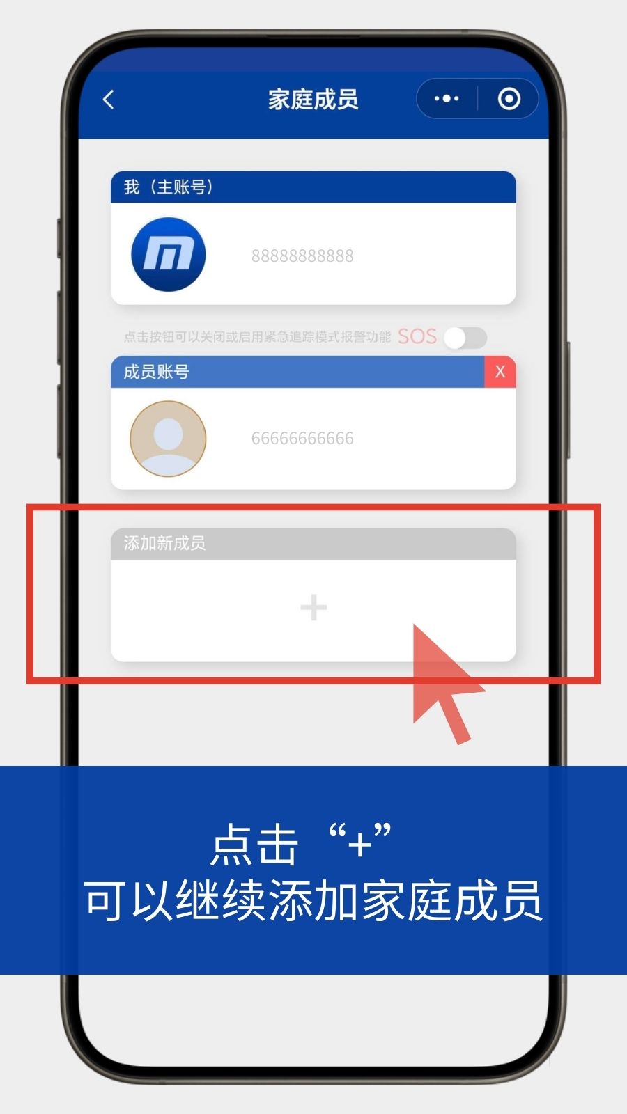 家庭成员功能可添加多人共同查看设备位置信息,可以最多添加5个家庭成员。