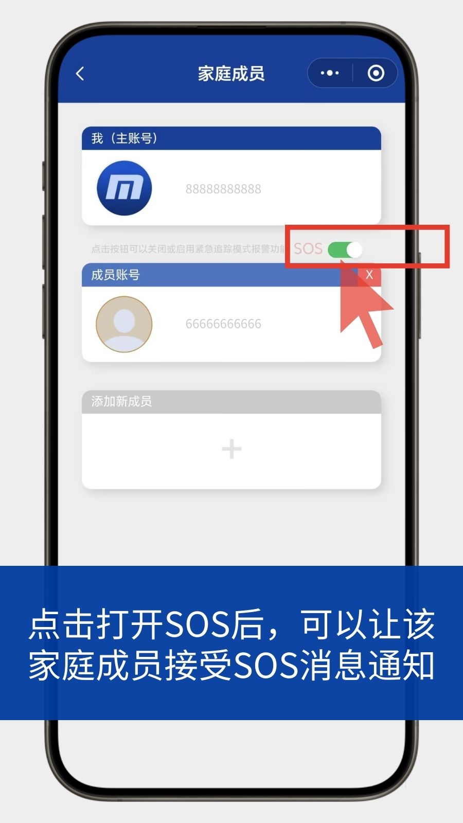 点击打开SOS后,可以让该家庭成员接受SOS消息通知