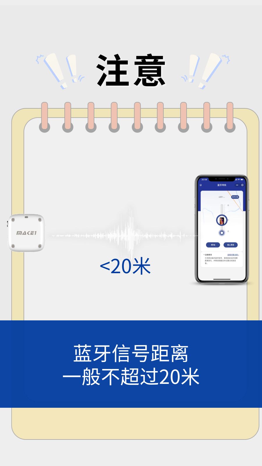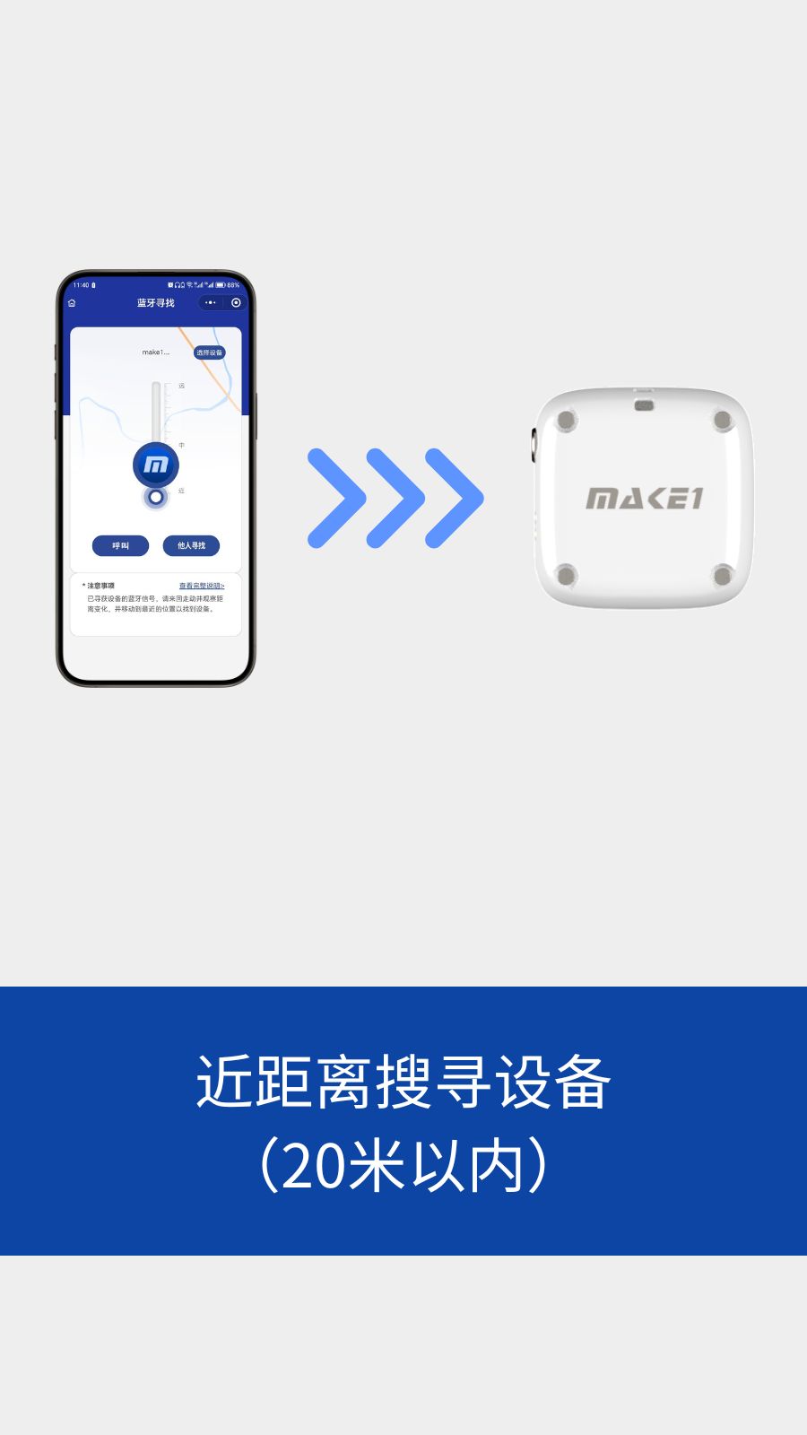 蓝牙寻物功能,是MAKE1实验室免费提供的一种近距离搜寻设备的方法,此功能适用于寻找近距离但无法看到的设备,如放在抽屉里、掉进草丛中、位于地下室弱信号区等。