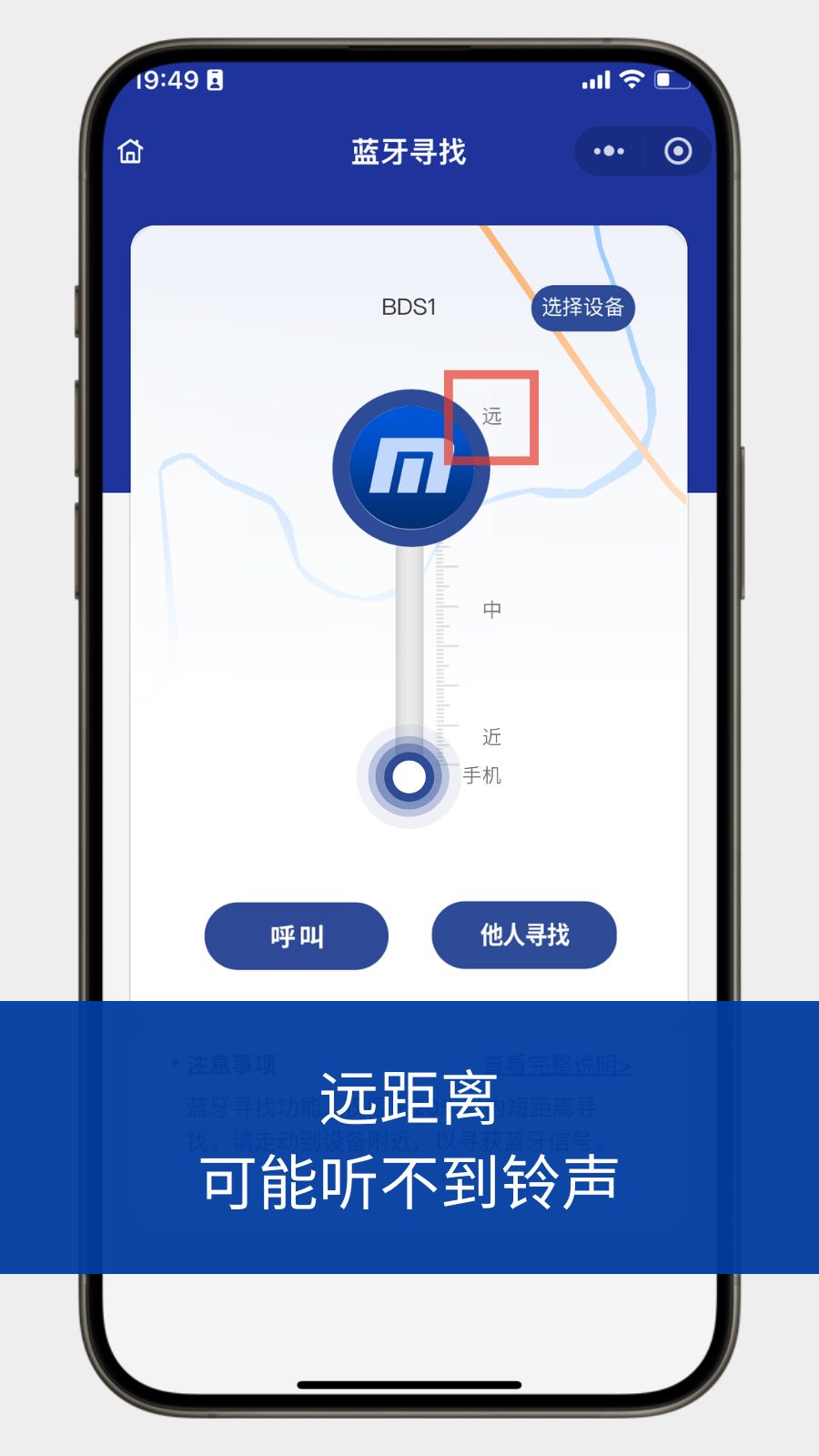 如果因手机兼容性导致无法呼叫,或因环境嘈杂导致无法听到铃声,请走到显示为近距离的位置,设备就在附近约1米范围内。