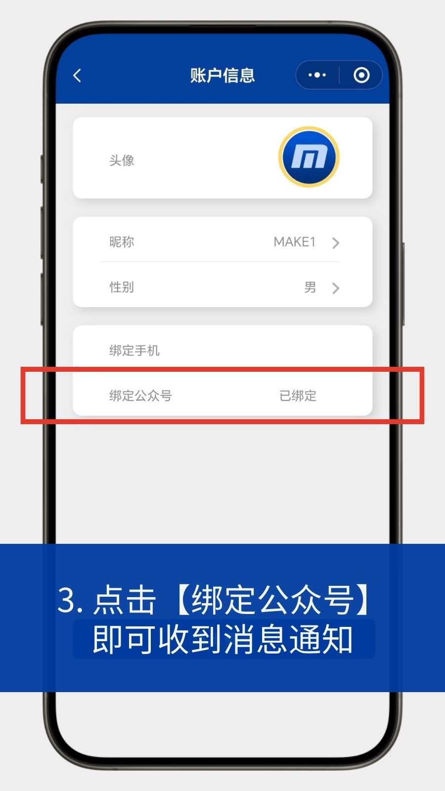 MAKE1GPS小程序通知消息均采用MAKE1公众号进行推送,设备需要与公众号绑定。