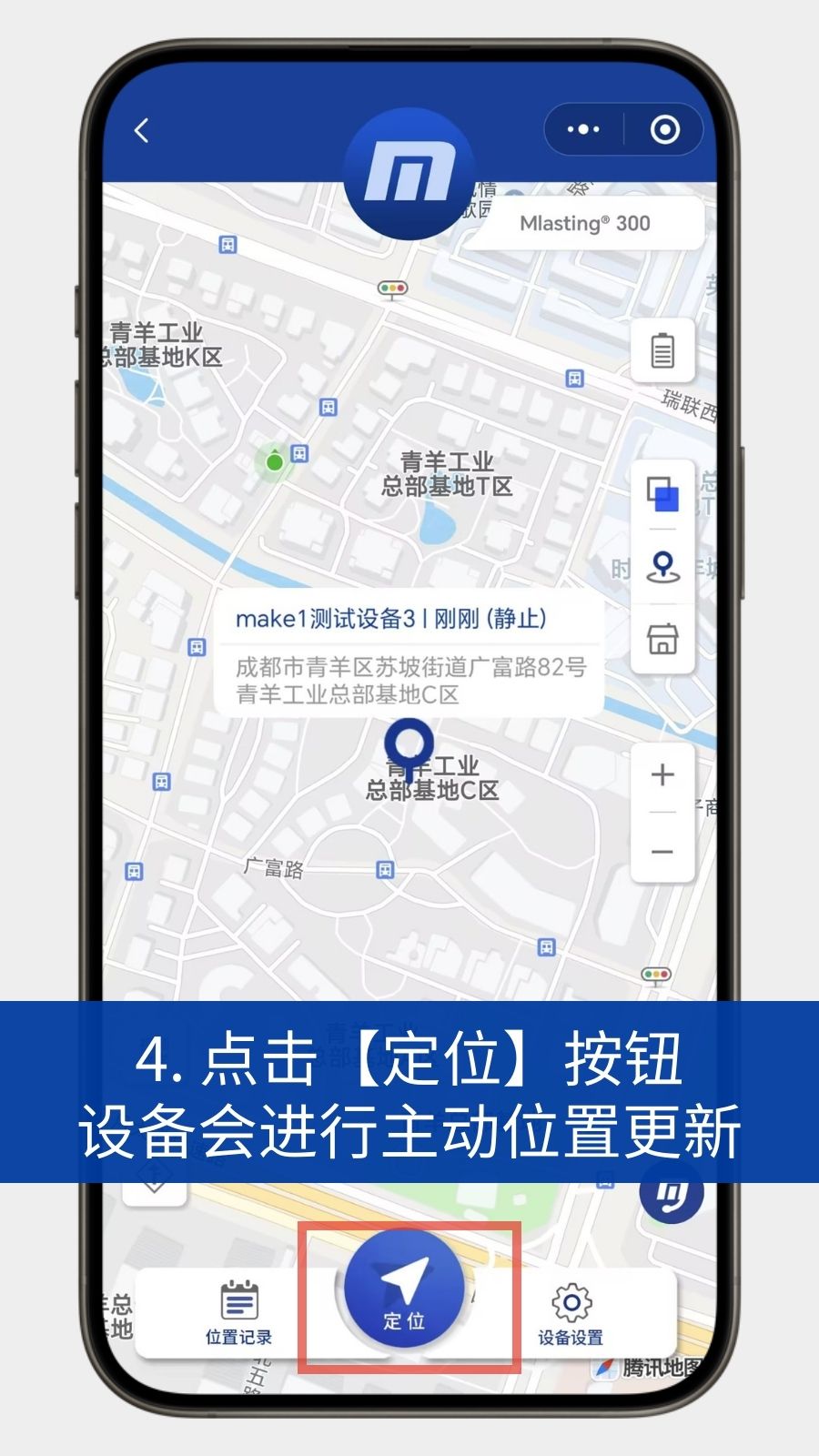 3.点击“定位”按钮,设备会进行主动位置更新