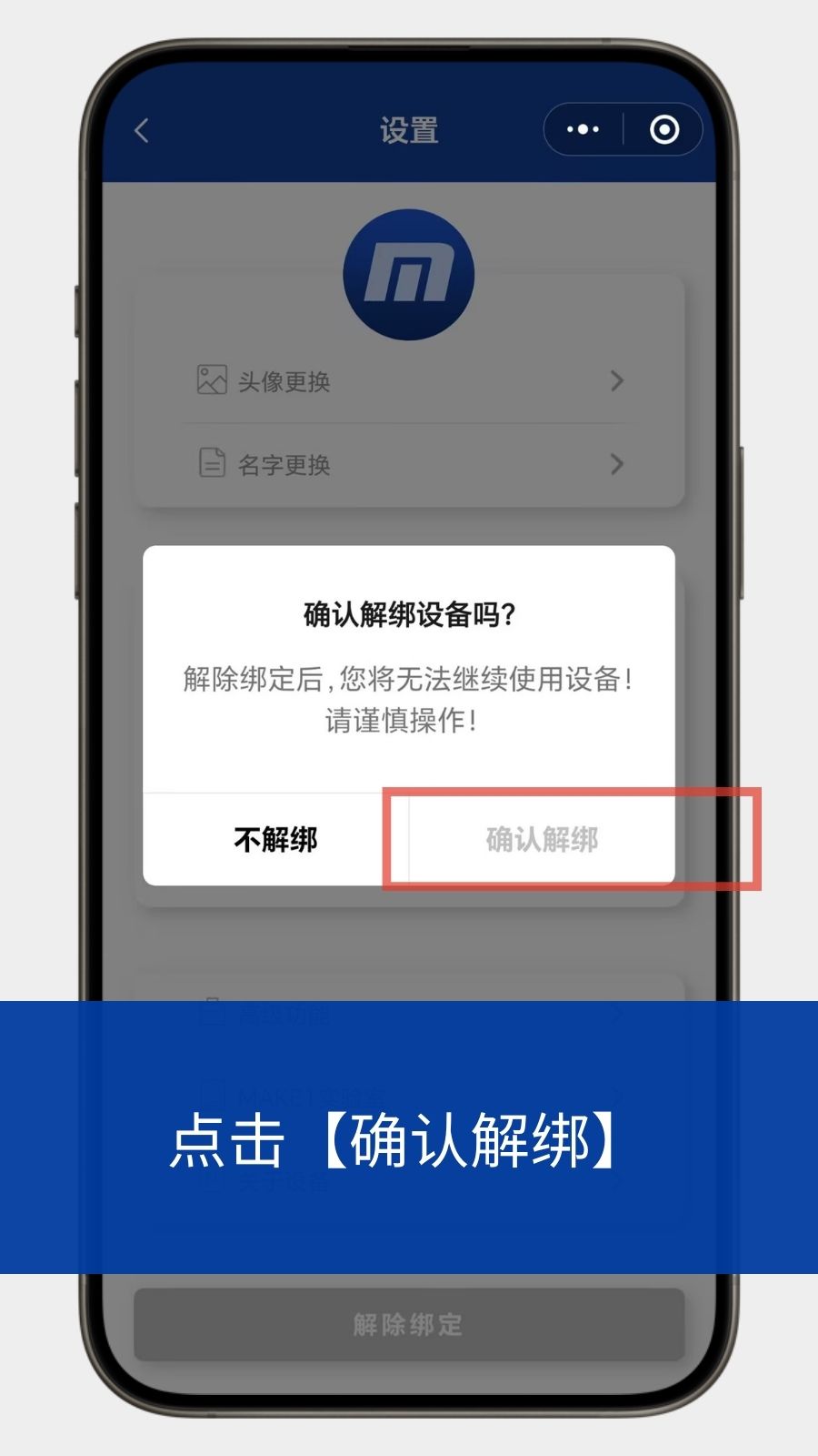 2.解除绑定后设备相关信息将会进行清除。请谨慎操作