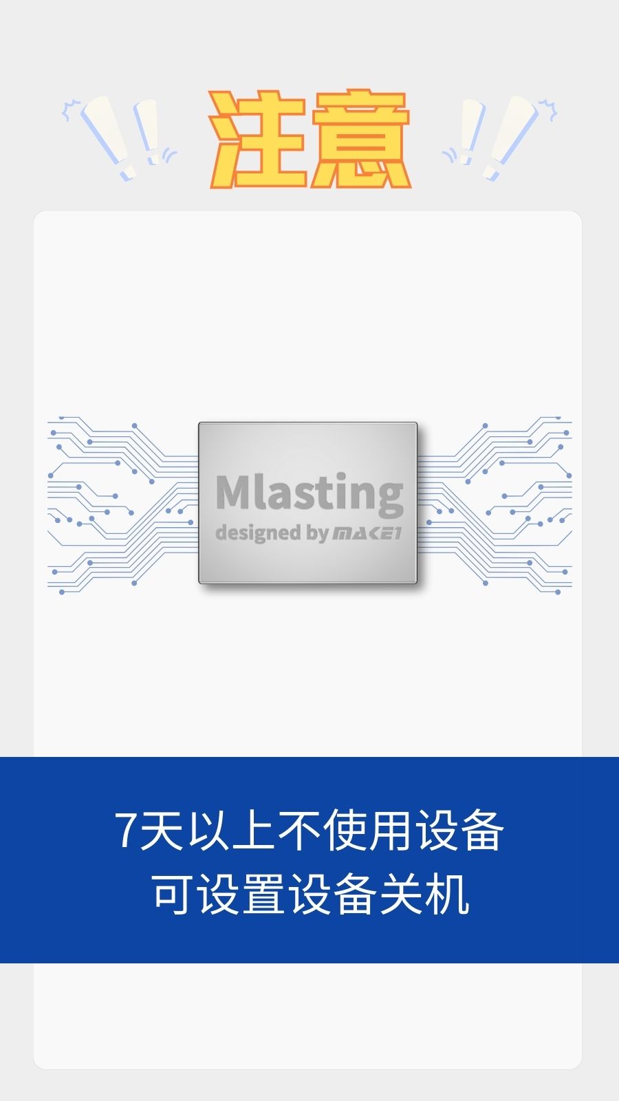 1.MAKE1产品采用Mlasting低功耗技术,7天内不使用设备,无需关机。7天以上不使用设备可设置设备关机。