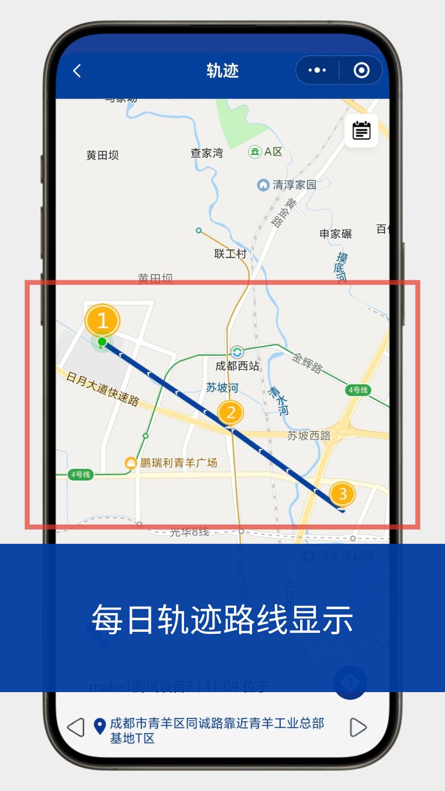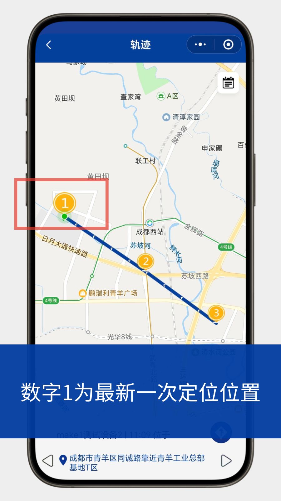 每日轨迹路线显示,最大数字为当日首次定位位置,