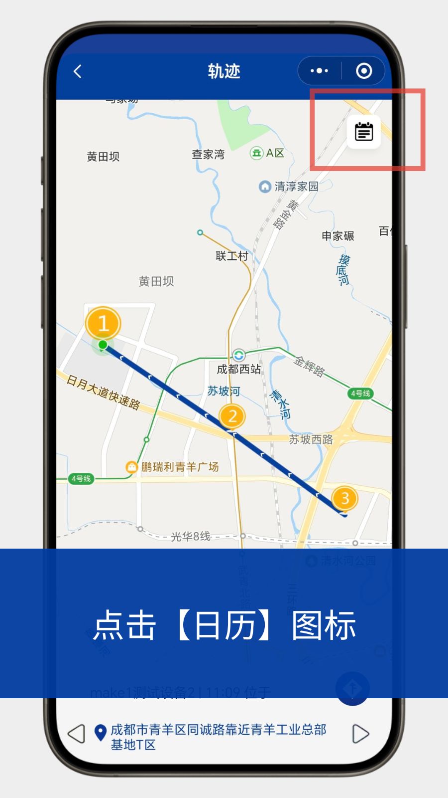 点击【日历】图标,可以选择日期查看历史轨迹,
