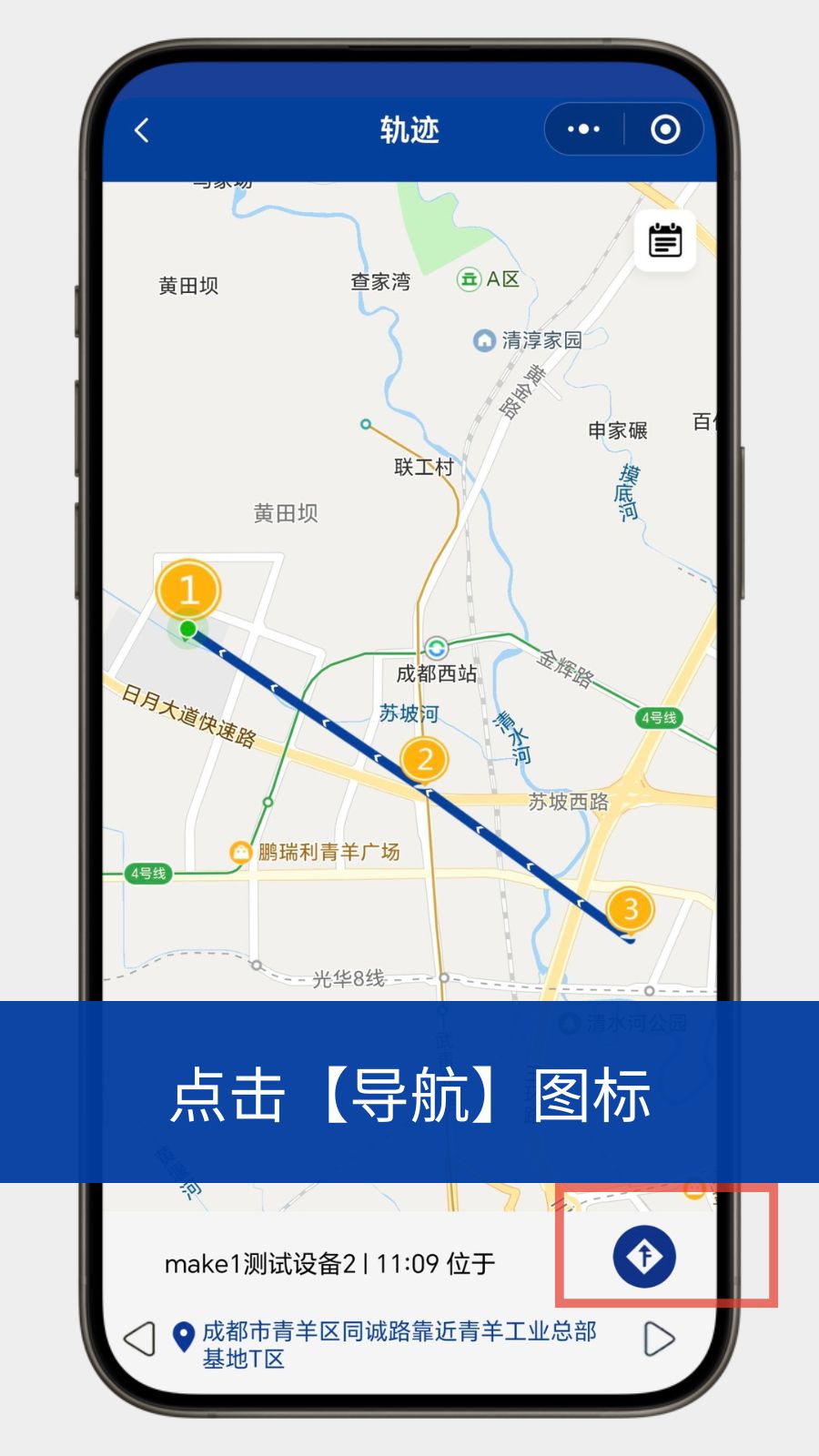 点击【导航】图标,可以切换到手机地图,导航到定位位置;