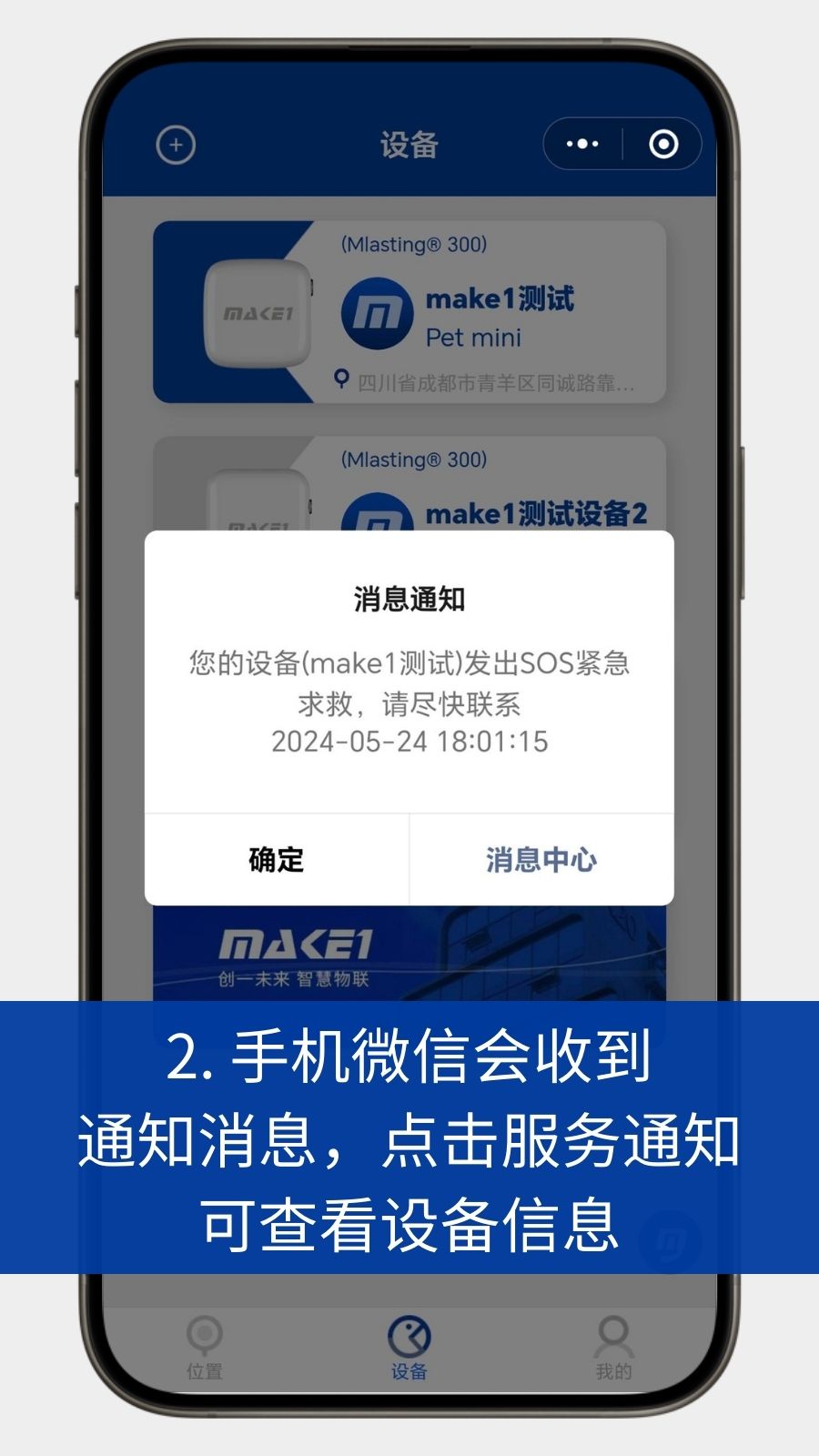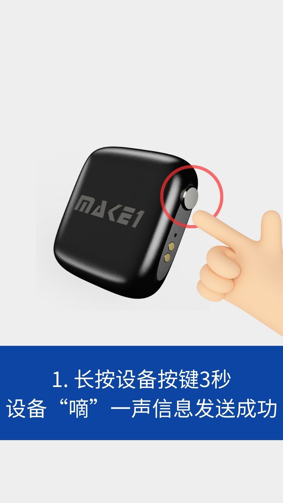 1.长按设备按键3秒,“滴”一声信息发送成功